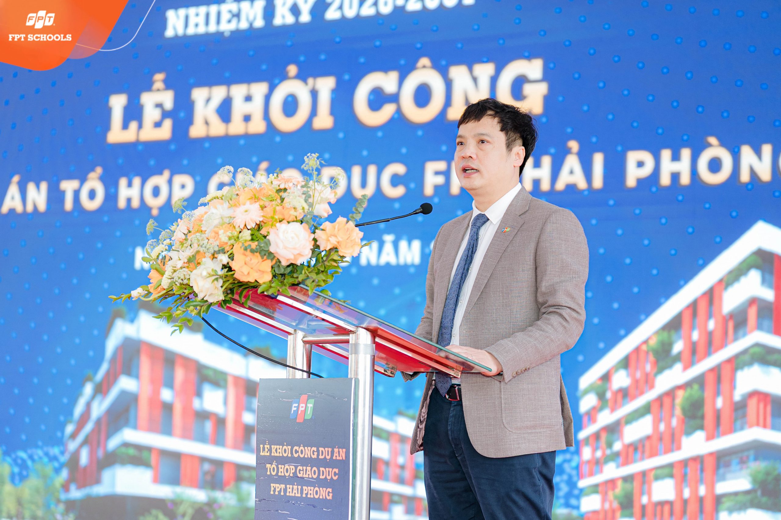 Phát biểu tại Lễ Khởi công, ông Nguyễn Văn Khoa, Tổng Giám đốc Tập đoàn FPT nhấn mạnh: “FPT cam kết đồng hành cùng thành phố Hải Phòng trong giải quyết bài toán đào tạo và phát triển nguồn nhân lực chất lượng cao, đặc biệt trong các lĩnh vực khoa học công nghệ, đổi mới sáng tạo và chuyển đổi số. Các công trình như Tổ hợp giáo dục FPT được định hướng trở thành môi trường học tập hiện đại, tạo điều kiện để học sinh, sinh viên Hải Phòng và khu vực lân cận phát triển toàn diện về kiến thức, kỹ năng và năng lực thực tiễn. Việc đầu tư các tổ hợp giáo dục trọng điểm thể hiện sự chủ động của FPT trong đồng hành, góp phần triển khai các định hướng của Trung ương, trong đó có Nghị quyết số 57-NQ/TW về phát triển nguồn nhân lực chất lượng cao và Nghị quyết số 71-NQ/TW về đổi mới giáo dục và đào tạo.”